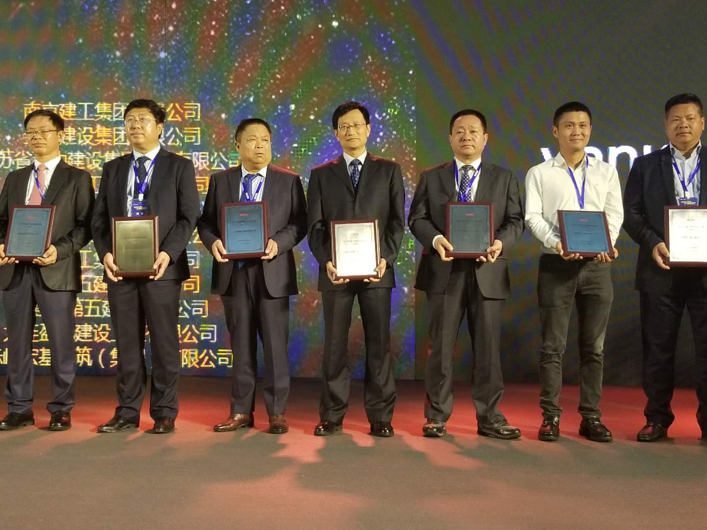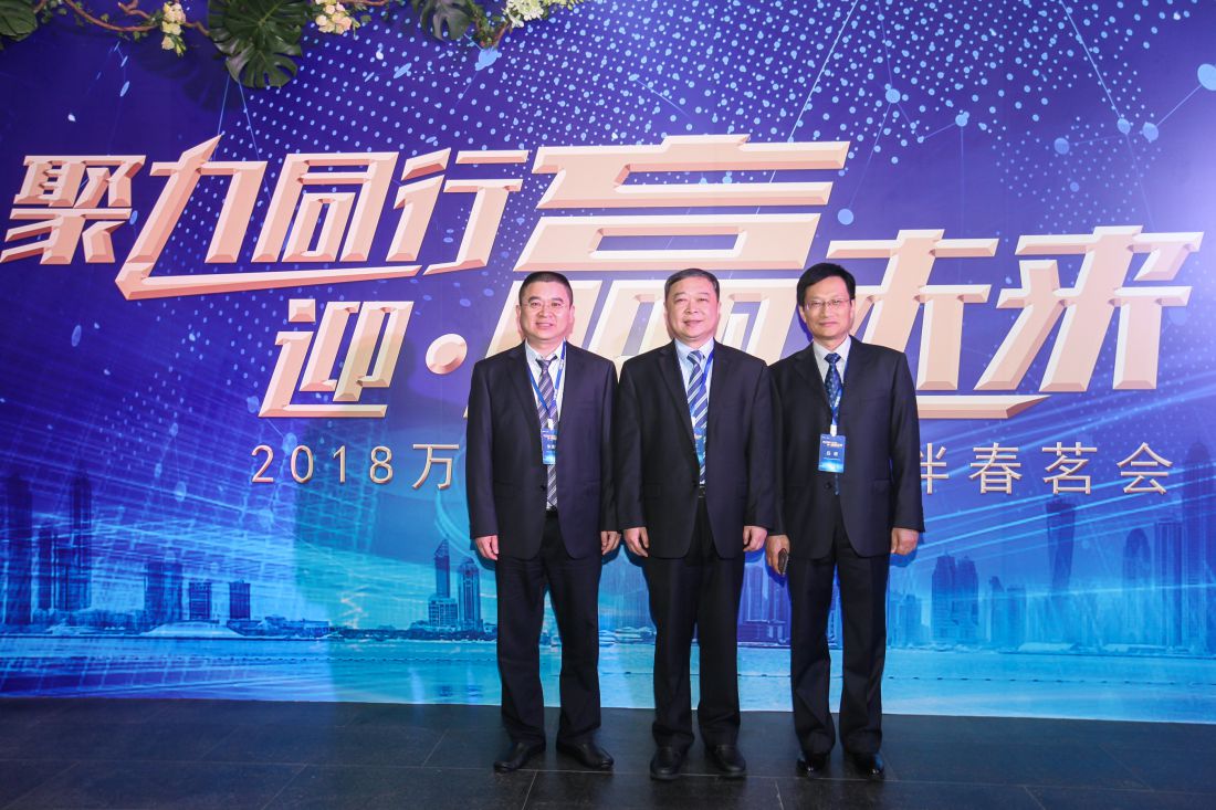 316下午,江蘇華建董事長王宏、北京分公司總經理呂進和北京分公司四處主任朱建奇應邀參加萬科集團舉辦的合作伙伴春茗會。會上,江蘇華建被萬科集團評為總包類2017年度萬科A級供應商,呂總代表江蘇華建上臺領取了榮譽獎牌。