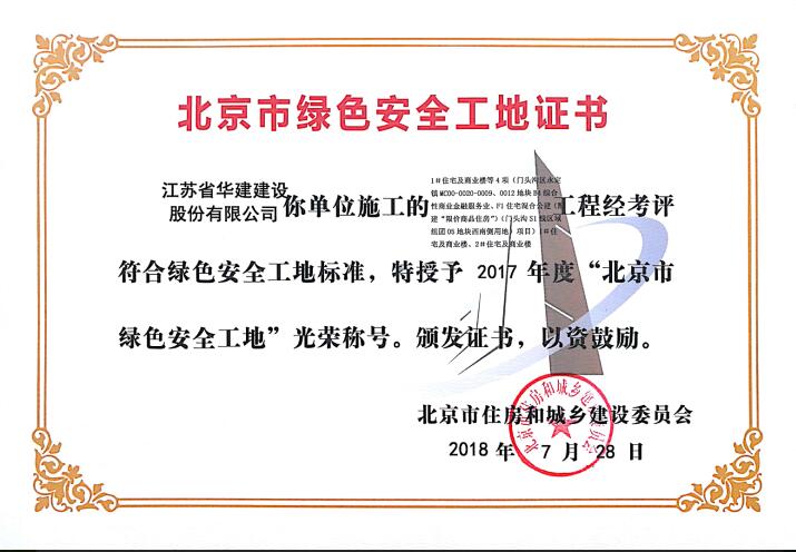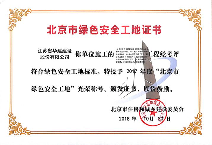 北京公司兩項工程獲北京市綠色安全工地 時間:2018-11-11 3564 近日,從北京市住房和城鄉建設委員會傳來喜訊,由北京公司總包承建的1#住宅及商業樓等4項(1#住宅及商業樓、2#住宅及商業樓)和1#住宅及商業樓等4項(3#限價商品房及商業樓、8#限價商品房及商業樓)兩個標段項目榮獲 “北京市綠色安全工地”光榮稱號,并獲頒證書。