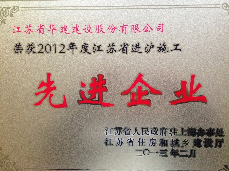 3月5日,在江蘇省政府駐滬辦、江蘇省住房和城鄉(xiāng)建設(shè)廳召開的2012年度江蘇進(jìn)滬施工總結(jié)工作大會(huì)上,江蘇華建被表彰為“江蘇省進(jìn)滬施工先進(jìn)企業(yè)”,這已是第十次獲此殊榮;表彰會(huì)上,有1人被被評為優(yōu)秀企業(yè)經(jīng)理,有5人被評為優(yōu)秀建造師,各有1人被評為安全管理先進(jìn)個(gè)人、質(zhì)量管理先進(jìn)個(gè)人、經(jīng)營管理先進(jìn)個(gè)人。