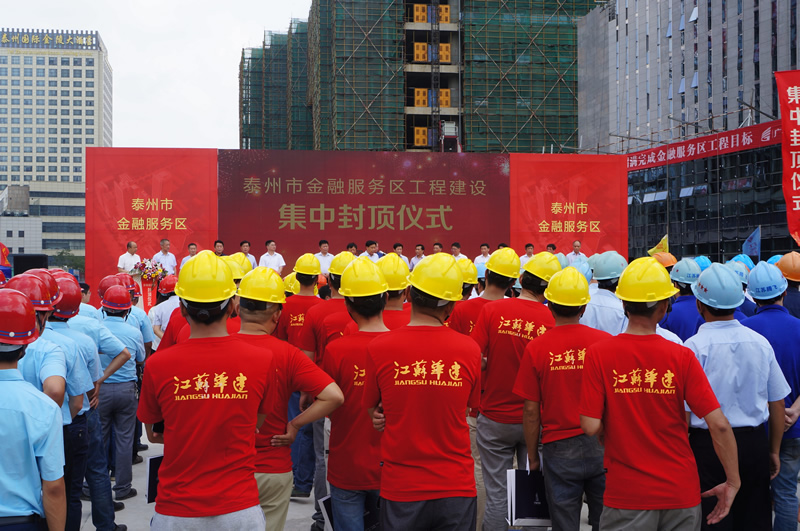 泰州金融服務(wù)區(qū)工程建設(shè)封頂儀式隆重舉辦 時(shí)間:2016-08-08 4174 8月8日,泰州市政府在由蘇北分公司承建的泰州金融服務(wù)區(qū)隆重舉辦封頂儀式。江蘇華建副董事長(zhǎng)陳榮春作為施工單位代表作發(fā)言。