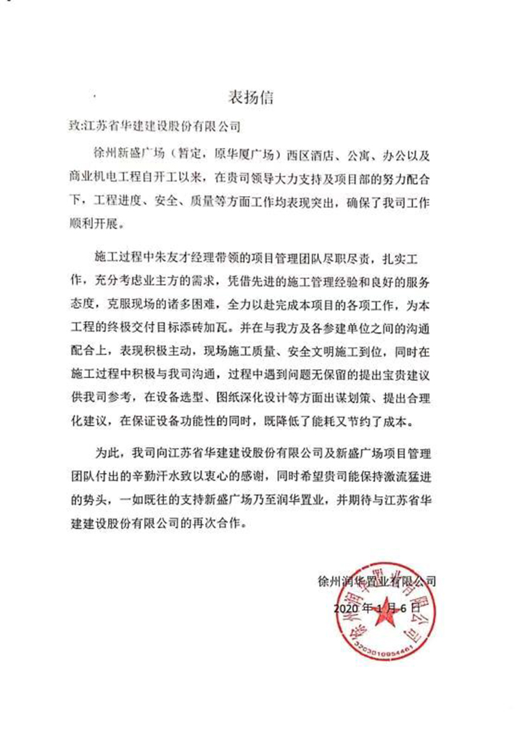 公司承建項(xiàng)目受甲方表揚(yáng)