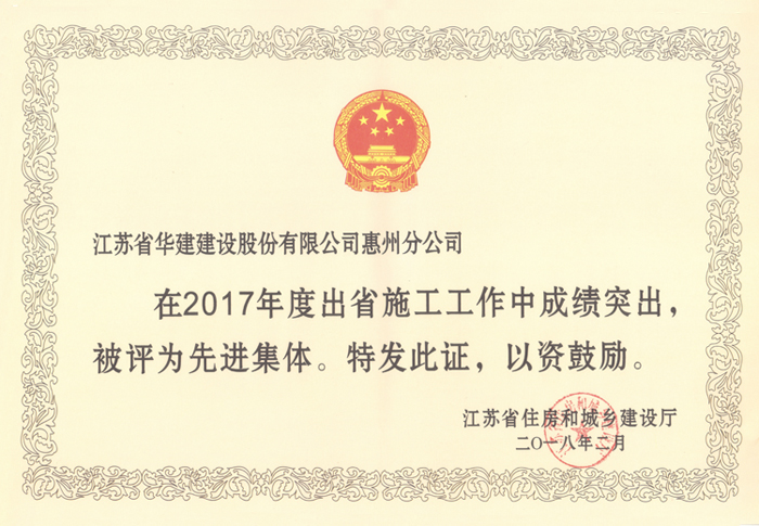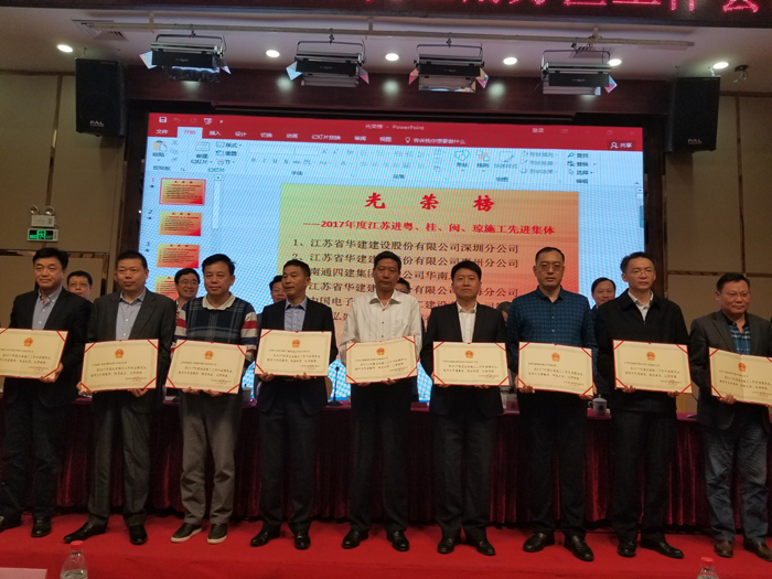惠州公司獲評“2017年度江蘇出省施工先進集體” 時間:2018-03-26 3257 3月24日,2018年度江蘇建筑業南方區工作會議在深圳召開,會議表彰了一批江蘇出省施工先進集體及先進個人。惠州公司被江蘇省住房和城鄉建設廳評為“2017年度江蘇出省施工先進集體”,總經理周群利、技術處主任陳申高被江蘇省住房和城鄉建設廳評為“2017年度江蘇出省施工先進個人”;史泰龍、孔祥明、王興東分別被江蘇省人民政府駐深圳(廣州)辦事處表彰為2017年度江蘇進粵、桂、閩、瓊施工質量安全、經營財務和新聞報道先進個人。