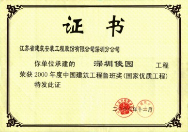 深圳俊園獲98年深圳市文明工地,99年獲江蘇省優(yōu)質(zhì)工程金獎,同年被授江蘇省建筑業(yè)新技術(shù)應(yīng)用示范工程,2000年獲江蘇省“揚(yáng)子杯”獎,深圳市優(yōu)質(zhì)樣板工程第一名和金牛獎及全國建筑業(yè)最高獎“魯班獎”。