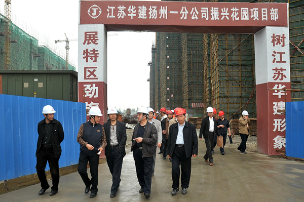 陸金龍董事長一行檢查振興花園安全生產工作 時間:2010-05-07 5473 5月5日,陸金龍董事長一行赴公司在揚首個土建項目振興花園檢查指導安全生產工作。在聽取了項目部相關同志對安全生產情況的具體介紹后,陸總指出,安全生產大于天,各級管理人員要在思想上高度重視,千萬不能有松懈麻痹思想,要對安全工作加大投入,在組織上層層落實,積極開展各類安全培訓教育,切實把安全工作做到位。隨后,陸總一行人到施工現場參觀檢查,對各項工作表示滿意。公司副總經理吳士茂、揚州一分公司李幼杰、王志明等領導陪同參加。