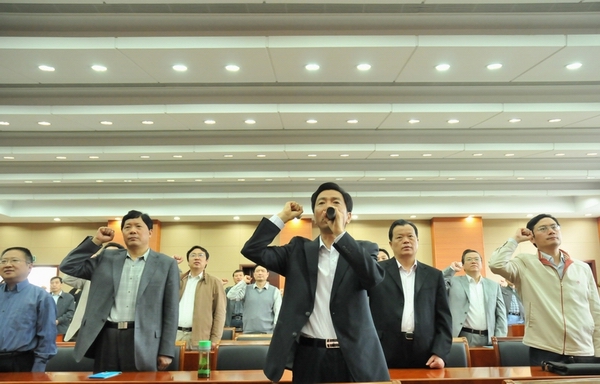 揚州建工控股系統組織黨員干部到揚州市警示教育基地參觀接受教育 時間:2011-05-27 5013 5月27日上午,建工控股公司機關、華建總部黨員干部和揚建、揚安、華宏、中專校等單位領導班子成員及黨務、紀檢、財務、行政等部門中層負責人共80多人,到揚州市警示教育基地參觀接受教育,大家觀看了預防腐敗警示教育宣傳圖片、電視專題片和違法犯罪人員現身說法錄像。建控公司黨委書記、董事長陸金龍在參觀結束前作了誡勉講話,指出這次建控系統組織黨員干部開展廉潔自律警示教育活動,是加強干部能力作風建設的一項重要內容。一系列反面案例帶來的教訓和思考,令大家深受觸動。見不賢而內自省。建控系統廣大黨員干部要從確立正確的角色定位、樹立合理的人生追求、建立完善的制度保障、打造健康的從業環境四個方面入手,進一步加強廉政教育、樹立自律意識、保持清廉本色,從而提高干事業、謀發展的能力和水平,為創建“三個揚州”、建設和諧社會作出應有貢獻。最后,陸金龍同志帶領大家集體進行了莊嚴的廉政承諾宣誓。