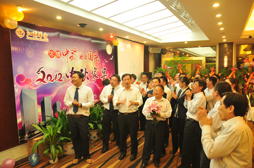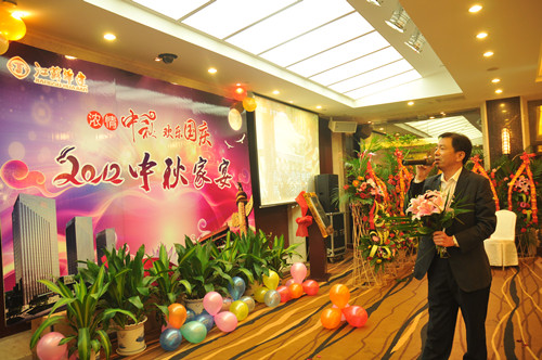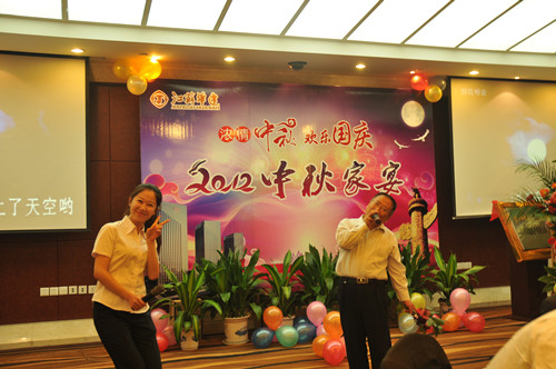 公司舉辦2012中秋家宴 時間:2012-10-06 4396 9月29日,公司在揚州西園大酒店隆重舉辦“濃情中秋,歡樂國慶——2012中秋家宴”,公司總部機關、在揚分支機構和駐外分公司回揚休假的經營層人員約百人共聚一堂,喜迎中秋、國慶佳節的來臨。家宴上,無論是領導還是普通員工,大家縱情高歌,歡樂表演,充分展現了華建大家庭其樂融融的喜慶氣氛,同時展示了華建人昂揚向上的精神風貌。
