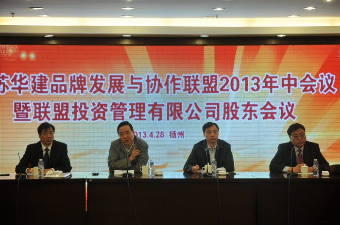 4月28日,江蘇華建品牌發(fā)展與協(xié)作聯(lián)盟2013年中會(huì)議暨聯(lián)盟投資管理有限公司股東會(huì)議在揚(yáng)州召開,19個(gè)聯(lián)盟成員、4個(gè)聯(lián)盟觀察員單位負(fù)責(zé)人和聯(lián)盟投資管理公司全體股東及經(jīng)營層參加會(huì)議,江蘇華建副董事長、總經(jīng)理宗有農(nóng)主持會(huì)議,聯(lián)盟主席陸金龍作了講話,揚(yáng)州市人民政府副市長聞道才、副秘書長侯承海出席會(huì)議。