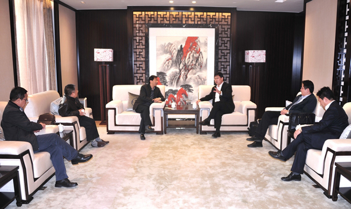 陸金龍董事長與九鼎投資高管洽談項目合作 時間:2013-11-21 5354 11月20日,陸金龍董事長在公司企業展示中心會見了昆吾九鼎投資管理有限公司合伙人岳錦、副總裁朱成彥等高管一行。 在展示中心會客廳,雙方互相介紹了各自公司的發展概況,就西安曲江項目的合作進行了洽談,同時雙方還對企業的管理理念、分配機制以及投融資等方面進行了交流。揚州現代金融投資集團副董事長、總經理劉研、公司高管程杰、陸俊等陪同參加。