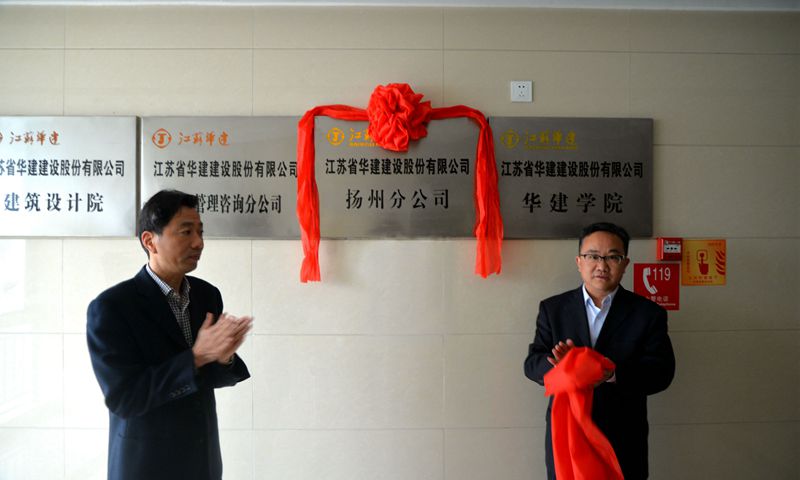 4月18日上午,江蘇華建揚州分公司舉行揭牌儀式。公司董事長陸金龍、副總經理陸俊共同為揚州分公司揭牌,公司在揚領導吳士茂、錢啟明、王宏等出席儀式。