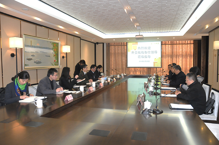 2月25日上午,國家外交部外事管理司廖力強(qiáng)司長、中央外辦外管局宋軍處長等一行5人,在省外辦副主任張松平、揚州市副市長汪志堅、市外辦副主任徐靜等陪同下,到江蘇華建開展外事工作服務(wù)企業(yè)發(fā)展專題調(diào)研,公司領(lǐng)導(dǎo)陸金龍、陳榮春、程杰、陸俊等一同接待。