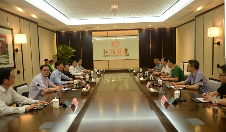 在陸金龍董事長的陪同下,邵威遠總經理一行首先參觀了公司企業展示中心,在了解了公司的發展歷程、業務板塊、創優創新、企業文化等方面的情況后,邵總對華建公司近年來的發展與變化表示充分贊同。