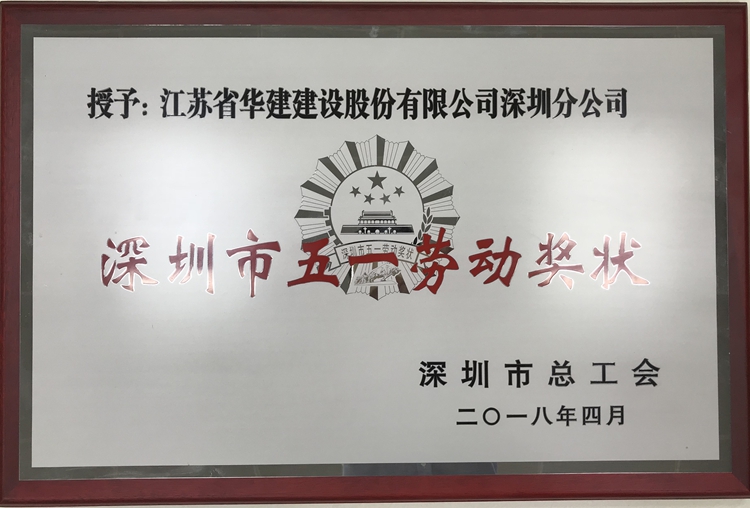 江蘇華建深圳分公司被授予深圳市五一勞動獎狀 時間:2018-04-27 3287 4月26日下午,在“五一”國際勞動節來臨之際,深圳市隆重召開慶祝“五一”國際勞動節大會,表彰一批在推動深圳經濟特區各項事業發展中作出重大貢獻的先進集體和先進個人,廣東省委常委、深圳市委書記王偉中、市人大常委會主任丘海、市政協主席戴北方出席大會并為獲獎者代表頒獎。會上,江蘇華建深圳分公司被授予2018年深圳市五一勞動獎狀(全市僅25家獲此殊榮),也是唯一一家建筑施工企業,這是對江蘇華建勞動創造輝煌的充分肯定,是對公司奮斗贏得榮光的高度褒獎。