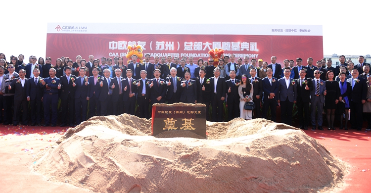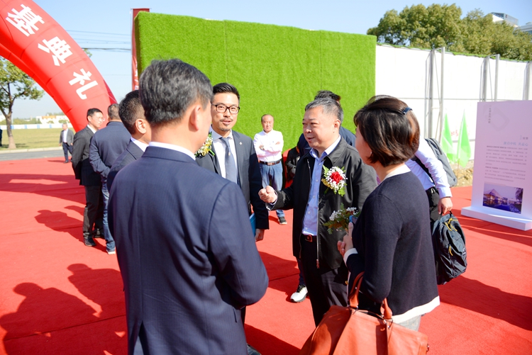 王宏董事長應邀出席中歐校友(蘇州)總部大樓奠基典禮 時間:2018-10-29 4272 10月27日,中歐校友(蘇州)總部大廈奠基典禮在蘇州工業園區隆重舉行,江蘇華建董事長王宏應邀出席。奠基儀式開始前,王宏董事長與中歐校友總會會長、中城聯盟輪值主席、朗詩集團董事局主席田明親切交談。王董事長對江蘇華建被選為總包單位參與大廈建設表示很榮幸,表態將以“魯班獎”標準抓好項目施工,努力打造成精品工程、標志工程、形象工程,為中歐校友會的發展盡心、盡力。田會長感謝江蘇華建對大廈建設的大力支持,希冀雙方的合作更加廣泛、更加深入。江蘇華建副總經理、上海區域公司總經理楊杰一同出席。