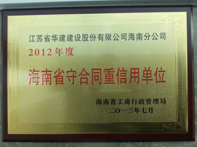 海南分公司喜獲海南省守合同重信用單位榮譽稱號 時間:2013-09-02 3614 8月底,海南分公司被海南省工商行政管理局表彰為2012年度“海南省守合同重信用單位”,這是公司連續21年獲此殊榮。多年來,海南公司堅持誠信為本,努力樹立品牌意識、形象意識,通過真誠服務贏得顧客的信賴、市場的拓展,在工程施工中信守合同,確保質量和工期,取得了卓有成效的業績。