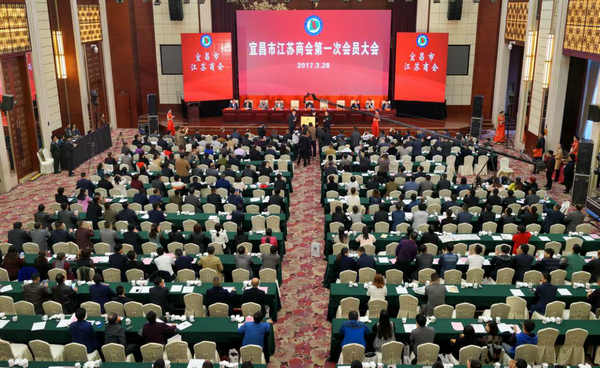 3月28日,宜昌市江蘇商會成立大會在桃花嶺飯店舉行,200余名江蘇籍企業(yè)代表齊聚一堂,共話發(fā)展。