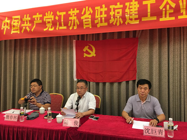 經海南省直機關紀工委批準,9月8日下午,江蘇省駐瓊建工企業黨委在??谑杏^海溫泉酒店召開黨員大會,選舉首屆中共江蘇省駐瓊建工企業紀律檢查委員會。會議由黨委委員魏春林同志主持,江蘇駐瓊建工企業黨委書記陸俊同志到會指導。