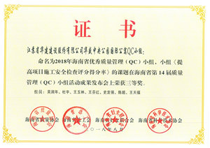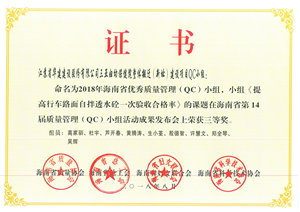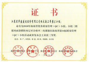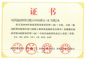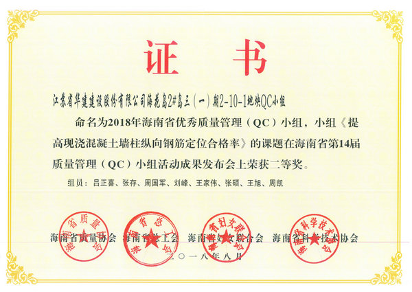 海南公司五項QC成果獲得省級表彰 時間:2018-09-03 3087 日前,海南省質量協會公布了2018年海南省“優秀質量管理(QC)小組”活動成果評比結果,海南分公司共有5項成果受到表彰。其中,?;◢u2#島三(一)期2-10-1地塊QC小組榮獲二等獎,博鰲三江口濱水旅游商業區(二期)項目部QC小組、三亞婦幼保健院整體搬遷(新址)建設項目QC小組、恒大海上帝景QC小組、華盛中央公園國際公寓QC小組榮獲三等獎。 (技術質量處)