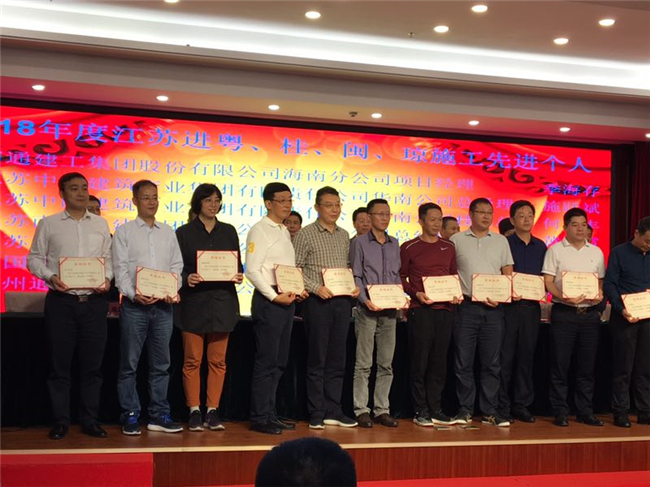 海南公司喜獲江蘇出省施工多項榮譽 時間:2019-03-24 3135 3月22日,江蘇省住建廳南方辦在南寧召開2019年江蘇建筑業南方區工作會議。會上,江蘇華建海南分公司、湖北分公司被江蘇省住建廳表彰為2018年度出省施工先進集體;高家馴、杜宇、吳潤年、劉遠被表彰為2018年度出省建筑施工先進個人;喬繼承、湯小慶、陳超分別被江蘇省政府駐深辦表彰為2018年度江蘇進粵、桂、閩、瓊經營財務、新聞報道、施工質量先進個人。 會上江蘇華建深圳分公司、珠海分公司、惠州分公司等兄弟單位同時被表彰為先進集體,另有一批先進個人分別受到表彰。(辦公室)