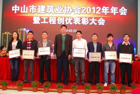 龍灣花園一期項目榮獲“中山市安全生產文明施工優良樣板工地”稱號 時間:2012-04-11 5080 龍灣花園一期項目榮獲“中山市安全生產文明施工優良樣板工地”稱號 2012年3月23日,中山市建筑業協會召開了“2012年年會暨工程創優表彰大會”。與會501家會員單位中,共有25個項目獲得了“中山市建設工程安全生產文明施工優良樣板工地”稱號,由珠海區域公司中山分公司施工的“龍灣花園一期”工程項目榜上有名。 珠海區域公司中山分公司總經理嚴正濤(右一)在表彰會現場領取獎牌
