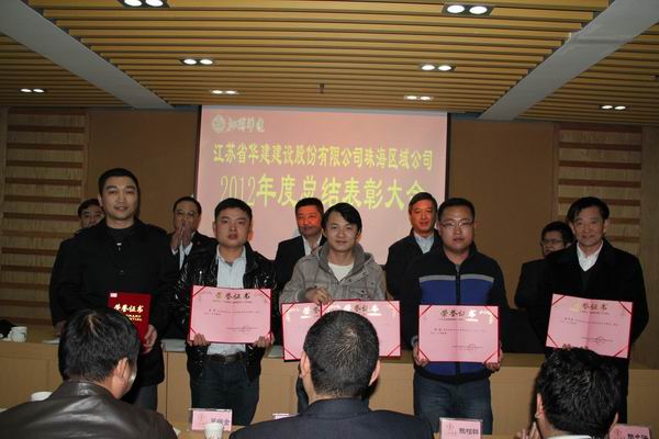 2013年1月12日,珠海區域公司在珠海公司會議室召開了2012年度總結表彰大會,各工程處主任、直管項目經理、先進個人代表、公司機關全體人員共66人參加了會議。會議由公司副總經理盧達同志主持,江蘇華建副總經理、珠海分公司總經理繆國樞同志作了工作報告。繆總的工作報告從七個方面對珠海區域公司2012年度的工作做了認真的總結,并對2013年的工作提出了打算。分公司副總經理嚴正濤同志在會上對區域公司2013年生產經營工作計劃作了解讀,對2013年的主要經營指標進行了分解,明確了各工程處(直管項目部)的具體指標任務。會議表彰了徐平等23名先進個人和“陽江陽光馬德里項目部”等3個先進單位,分公司副總經理、總工程師周學軍同志宣讀了表彰決定。大會結束后繆國樞總經理代表區域公司與2012年下半年新開工的5個項目部簽訂了修改后的內部承包協議書,修改后的內部承包協議加大了創建品牌的獎勵力度,激勵新開項目爭創優質工程,為提升企業形象,鑄造企業金字招牌多做貢獻。