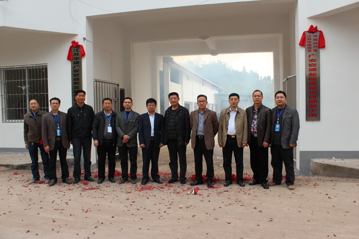 廣安項(xiàng)目指揮部及黨小組舉行揭牌儀式 時(shí)間:2014-03-19 5751 2014年3月18日,江蘇華建副總經(jīng)理陸俊、工程部經(jīng)理丁華與江蘇華建副總經(jīng)理、珠海區(qū)域公司總經(jīng)理繆國(guó)樞、珠海區(qū)域公司副總經(jīng)理嚴(yán)正濤、總會(huì)計(jì)師馮喜平一起,參加江蘇華建四川廣安官盛新區(qū)基礎(chǔ)設(shè)施暨美好家園建設(shè)項(xiàng)目指揮部及黨小組的揭牌儀式。