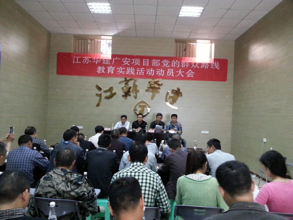 廣安官盛新區建設項目部黨小組召開黨的群眾路線教育實踐活動動員大會 時間:2014-04-17 4880 2014年4月16日,江蘇華建四川廣安官盛新區基礎設施暨美好家園建設項目部黨小組召開黨的群眾路線教育實踐活動動員大會。項目部所有黨員及各重要崗位管理人員共40余人參加會議。會議由珠海區域公司副總經理嚴正濤主持。珠海區域公司副總經理、總工程師周學軍在會上傳達了上級黨委關于深入開展黨的群眾路線教育實踐活動的實施方案和總的要求。珠海區域公司辦公室相關人員向與會者詳細介紹了本次活動所著力反對的“四風”的主要表現形式。官盛鎮黨委副書記馬江林參加會議,并對黨小組相關活動的開展提出了具體要求和指導意見。