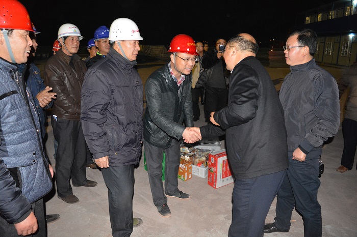 夜幕降臨,新區(qū)施工片區(qū)燈火通明,機械運轉聲此起彼伏。據統(tǒng)計,當晚項目共計約250人,各類機械設備140多臺參與加班作業(yè),整個片區(qū)儼然一派熱火朝天的景象。晚9時許,廣安區(qū)委書記文建平率廣安區(qū)四套班子有關人員分別來到方坪大道、盛世芳庭、官盛春天以及蓮花大道等施工現(xiàn)場,給正在加班加點施工作業(yè)的全體員工送來面包等食品和飲料,對他們不懼嚴寒堅持作業(yè)的辛勤付出表示衷心感謝和慰問。他強調,新區(qū)美好家園安置房標準高,百姓給予了很大期待。華建作為施工單位,搶晴天,占雨天,不分白天黑夜堅持作業(yè),為本地百姓干了實事,做出了貢獻。他同時指出,新區(qū)項目管理規(guī)范,員工統(tǒng)籌到位,各級領導參觀后多有贊揚,“是實實在在的標準化工地”。文書記最后勉勵大家,新區(qū)項目建設進展快,質量好,百姓也滿意,希望項目上下再加油,保質量保安全保進度,共同建設好官盛新區(qū)項目。