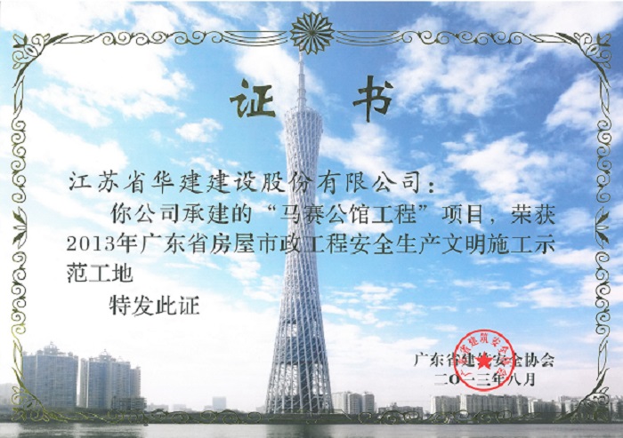 2013年馬賽公館工程廣東省房屋市政工程安全生產(chǎn)文明施工示范工地