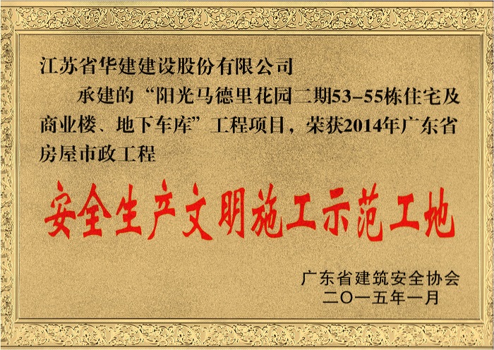 陽光馬德里二期工程榮獲2014年廣東省AA級安全文明標(biāo)準(zhǔn)化工地