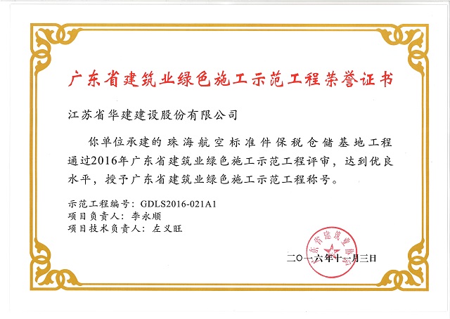 珠海航空標(biāo)準(zhǔn)件保稅倉(cāng)儲(chǔ)基地工程 廣東省建筑業(yè)綠色施工示范工程