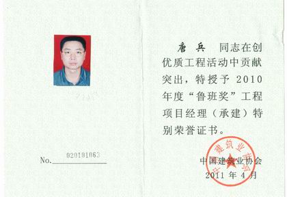 唐兵 時間:2012-04-10 7650 唐兵,現任深圳公司七處二工區副主任。先后擔任過5個重點大型超高層項目的技術負責人或項目經理,參與的施工工法、項目管理成果、實用新型專利等獲國家表彰,曾獲“江蘇省建筑業質量管理先進個人”稱號,被授予“創魯班獎工程項目經理特別榮譽證書”。