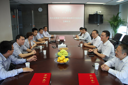 9月28日,江蘇省華建建設股份有限公司與佳兆業集團有限公司戰略合作框架協議在無錫簽署,今年5月雙方達成的戰略合作意向又向前邁出一大步。公司副總經理程杰和佳兆業集團副總裁高峰代表雙方在協議書上簽字。