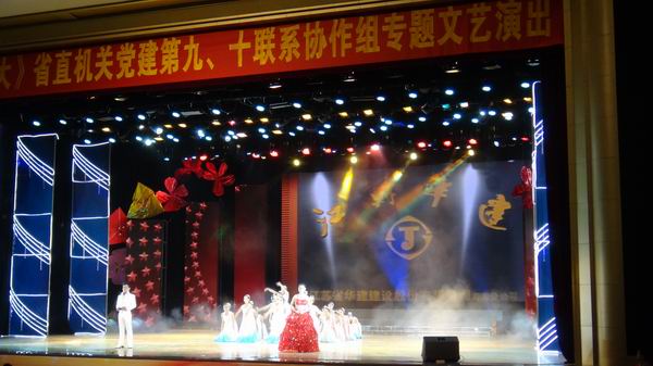 8月10日晚8:00,群團(tuán)黨旗紅、喜迎十八大,海南省直機(jī)關(guān)黨建第九、十聯(lián)系協(xié)作組專題文藝演出在海南省工商職業(yè)學(xué)院禮堂隆重舉行,江蘇省駐瓊建工企業(yè)黨委作為第十聯(lián)系協(xié)作組成員單位參與承辦贊助了此次晚會(huì),并精心組織和選送了大型歌伴舞節(jié)目《陽光路上》參加演出,受到省直機(jī)關(guān)工委領(lǐng)導(dǎo)、評(píng)委和廣大觀眾的一致好評(píng),達(dá)到了良好效果。江蘇省駐瓊建工企業(yè)黨委書記王宏率廣大黨員、干部、職工共27人出席觀看了晚會(huì)。