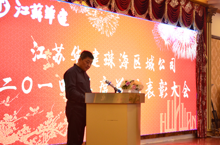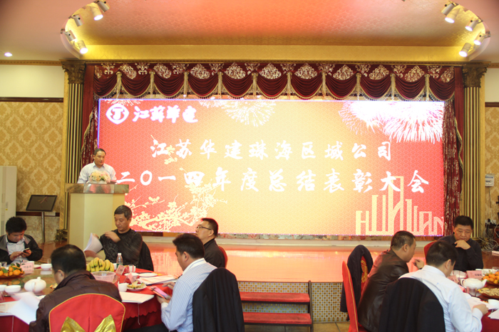 1月24日下午,江蘇華建珠海區域公司召開2014年度總結表彰大會。公司領導繆國樞、盧達、嚴正濤、周學軍、馮喜平和機關全體人員、各工程處主任、直管項目部經理、2014年度先進個人、先進集體代表及各項目部管理人員共100余人參加了表彰大會。會議由珠海區域公司副總經理盧達主持。江蘇華建副總經理、珠海區域公司總經理繆國樞代表公司經營層作了題為《開疆辟土,拓展經營領域多元化;規范管理,促進質量效益齊提升》的工作報告,全面梳理總結公司2014年度各項工作,并對2015年的工作作了具體部署,確定2015年為珠海區域公司的“效益提升年”,要求各單位以“提升效益”為中心目標,夯實管理基礎,規范管理行為,創新管理模式,提升管理效率,促進安全生產,提高工程質量,樹立企業形象,以切實的管理措施促進企業效益的全面提升。