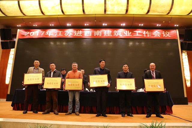 在江蘇商會組織召開江蘇出省建筑業(yè)企業(yè)西南地區(qū)黨委會會議。江蘇省建筑工程管理局副局長陳晨、江蘇省住建廳建筑市場監(jiān)管處處長范信芳、江蘇省住建廳質(zhì)監(jiān)站站長曹春光、重慶市住建委建管處處長夏太風、重慶市住建委行政審批中心主任吳廣等參加會議。會上,重慶分公司黨支部被江蘇省住建廳表彰為“2016年度江蘇進西南地區(qū)建筑施工先進黨支部”,田大浪、杜國圣同志被評為“2016年度江蘇出省施工優(yōu)秀黨務工作者”。